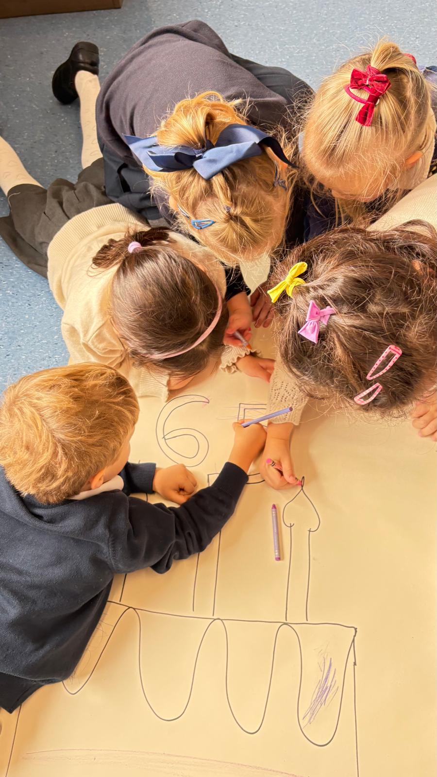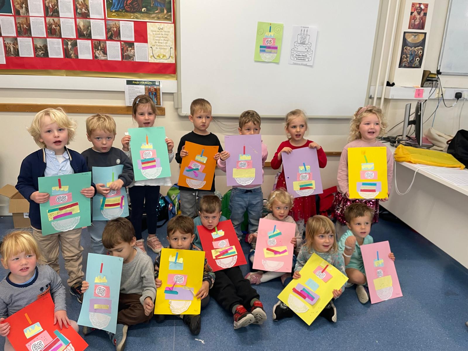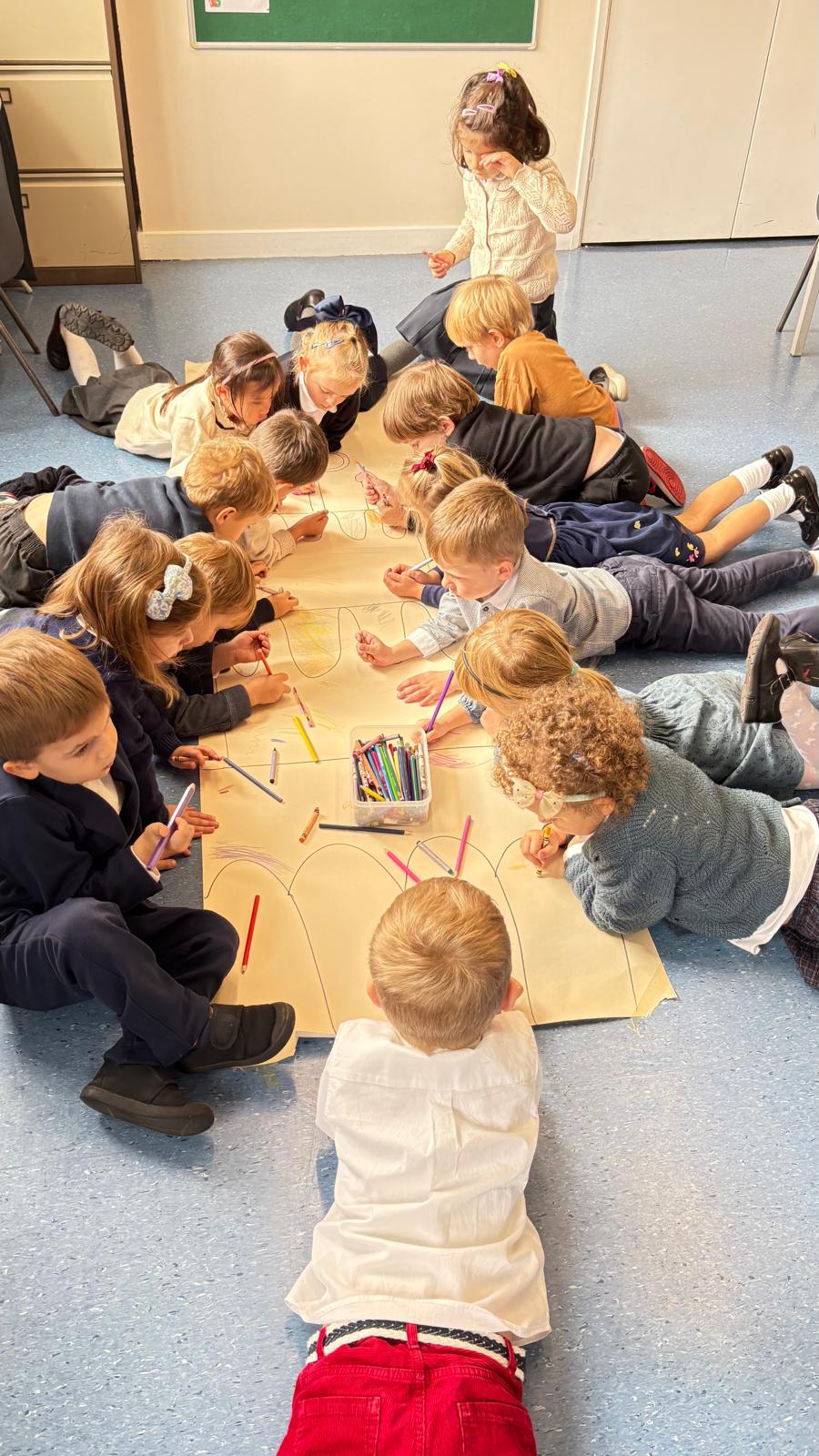 11 października 2025 – UczniowiePrzedszkola i Zerówki pracują nad laurkami na 65-lecieSzkoły!